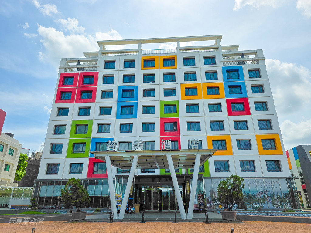 飯店外觀超繽紛的,是由知名建築師黃建鈞融合