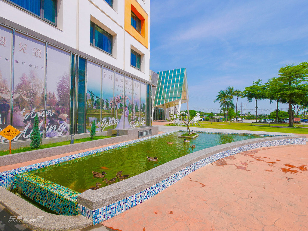湖裡有放養蝦、魚,晚上還會點燈,可供新人至湖中央證婚、拍照使用