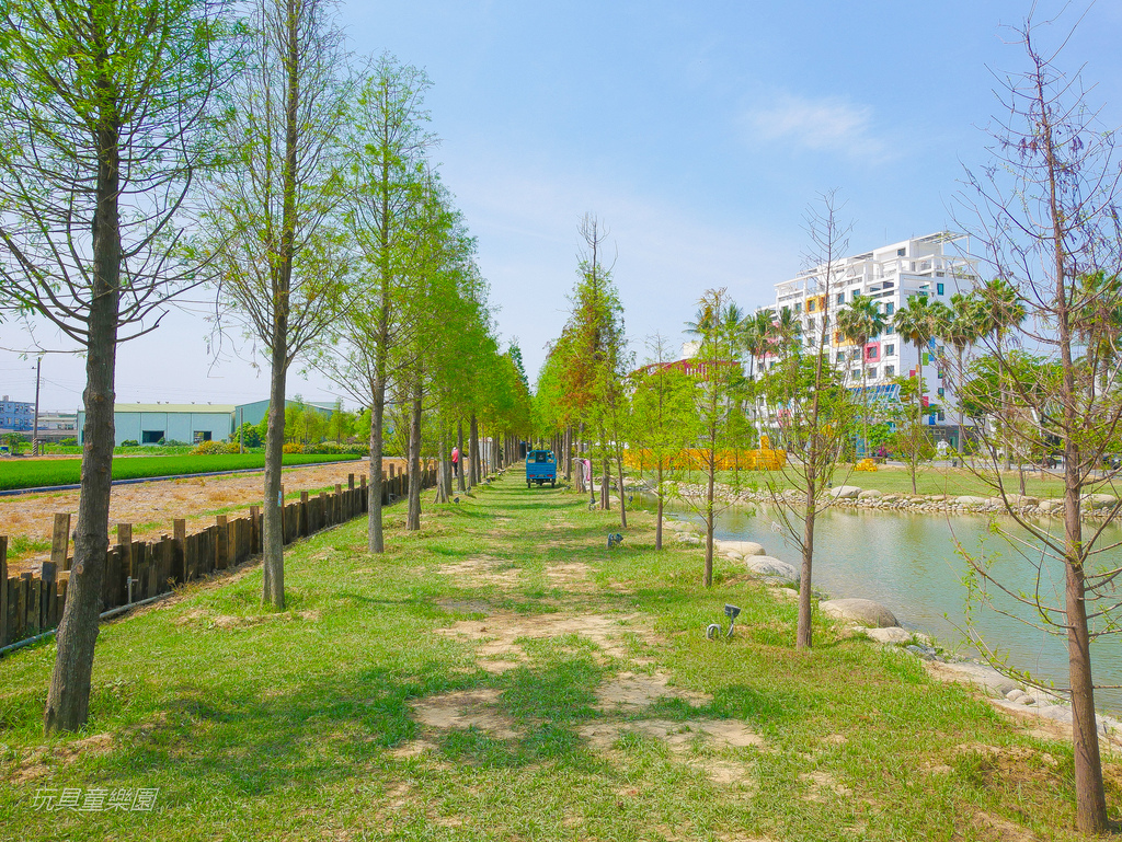 ▼心之湖再往裡面走有一大片落羽松和椰林,有涼亭可以放空拍照