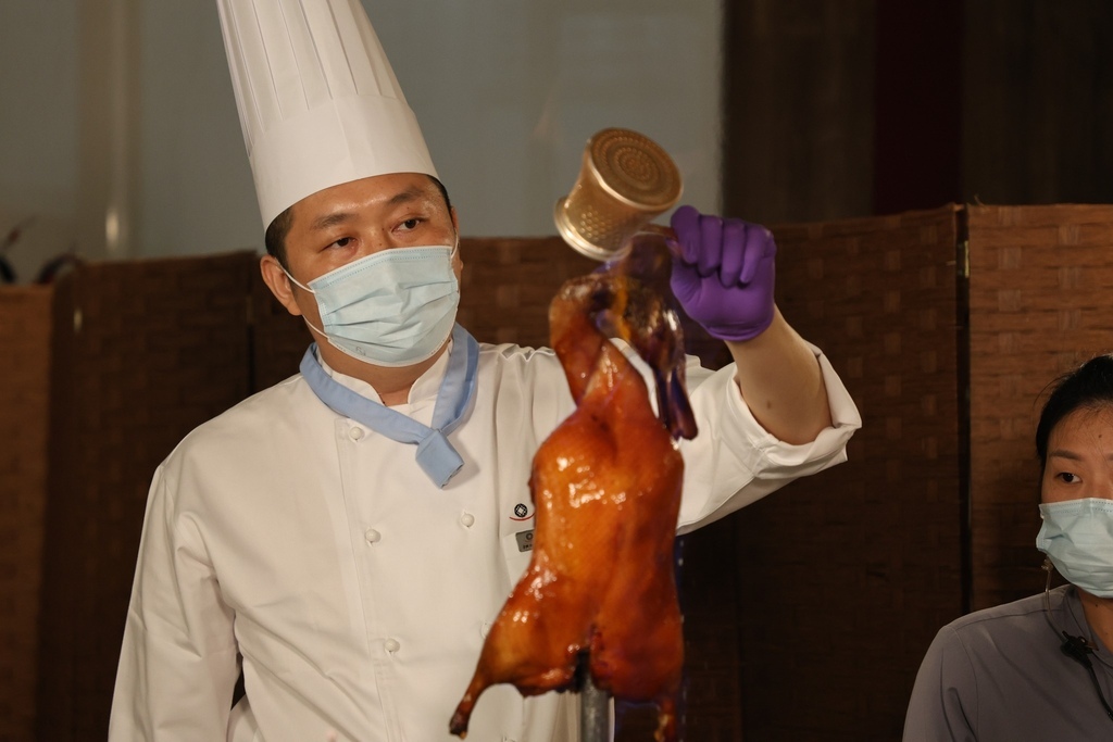 食材挖出來後,會有工作人員協助將土窯雞剪開倒入洗乾淨的鍋內